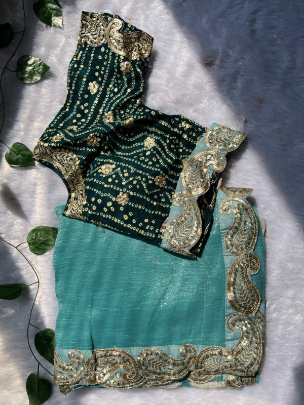 Paired with a ready-made blouse. Whether you're attending a party, a festive gathering, or a special occasion, this saree ensures you look stunning with minimal effort.